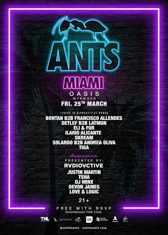 ANTS IBIZA Presents: ANTS Miami! The largest edition of the party in Miami to date! Featuring a stacked lineup: