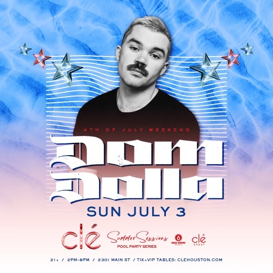 Clé Group and Disco Donnie Presents bring you: DOM DOLLA Sunday July 3rd, 2022 2pm-8pm 2301 Main Street Midtown Houston 21+ Only Dress Code: Fashionable Pool Attire Table Reservations: https://cletix.cc/VIP