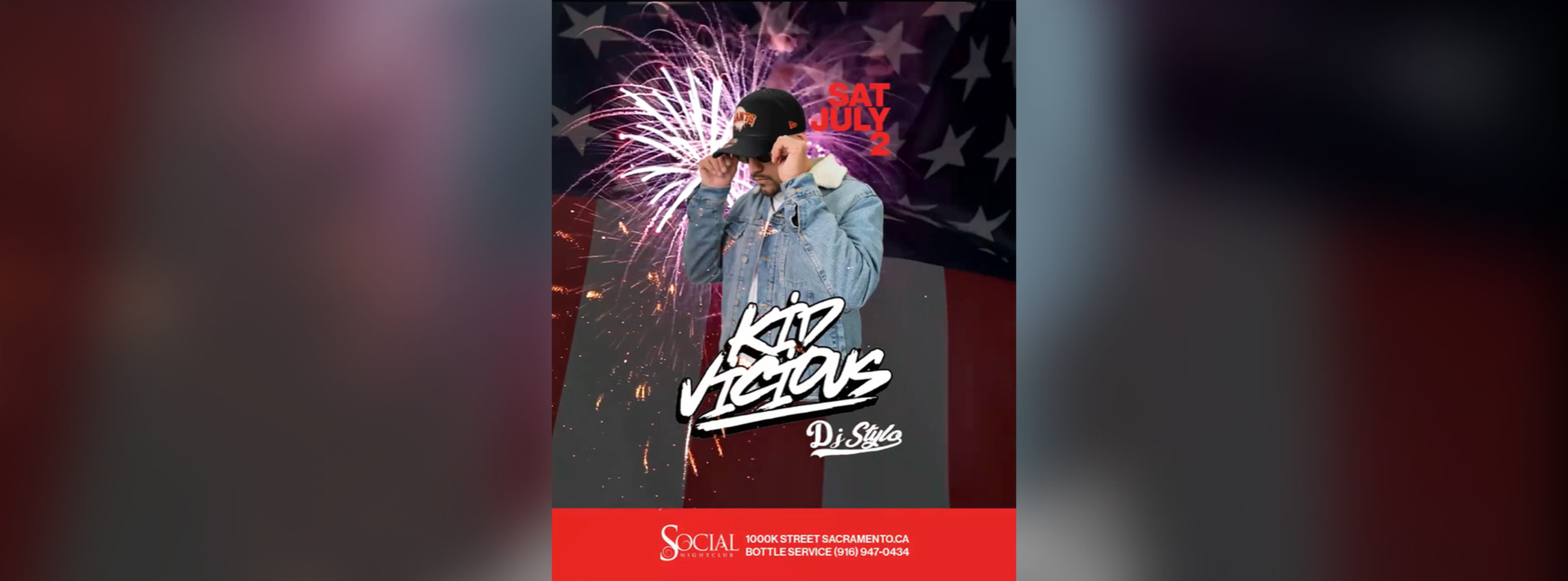 Saturday, July 2nd Social Nightclub hosts 4th of July weekend & welcome back KID VICIOUS to headline the main room + Rooftop Patio sessions from Resident Dj Stylo!