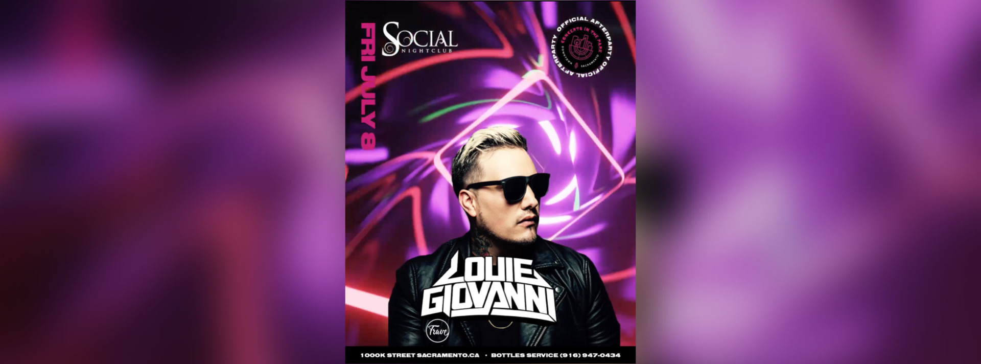 Friday, July 8th Social Nightclub hosts the Concerts in the Park Afterparty and welcomes back Louie Giovanni the main stage & Sacramento State's own DJ TRAVE to our Rooftop Patio!
