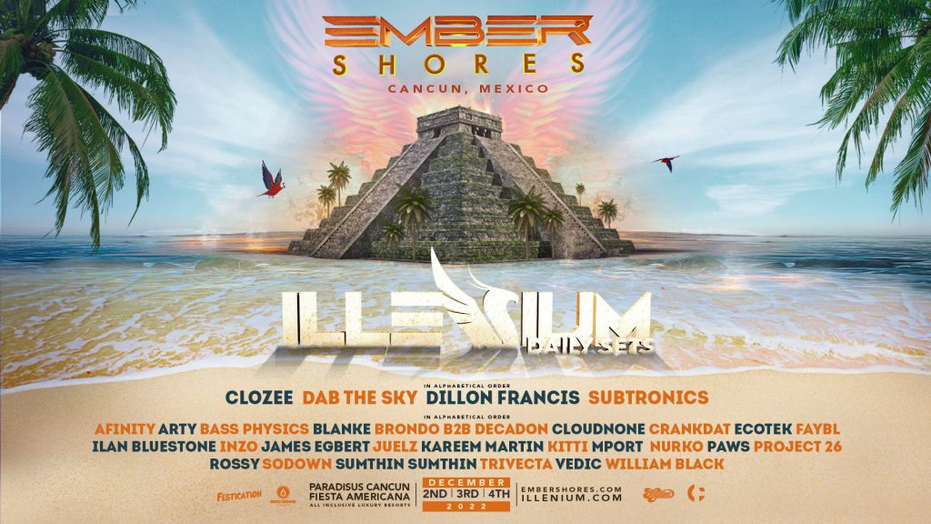 Ember Shores - ILLENIUM’s second curated destination event! Including a hand picked lineup, and located at the all-inclusive Paradisus Resort Dec. 2, 3, & 4 in Cancun, Mexico!