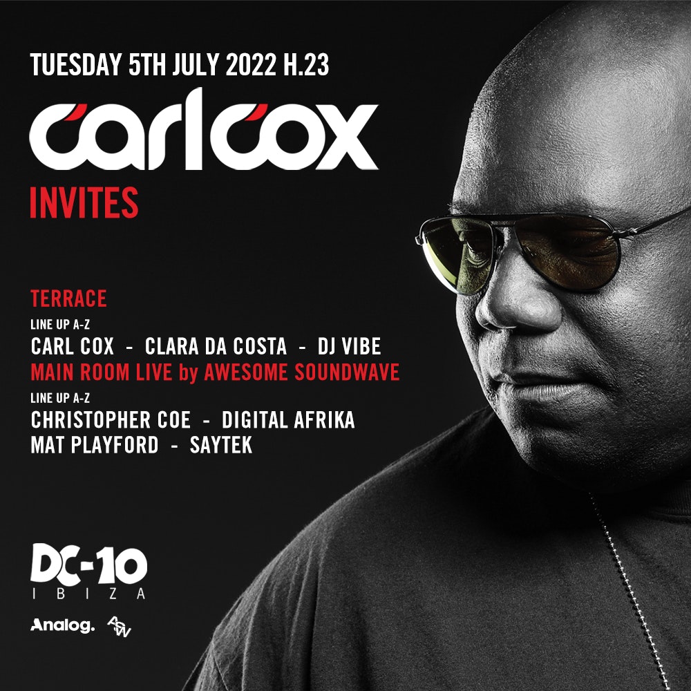 We are very happy to announce Carl Cox's residency #CarlCoxInvites at DC10 every Tuesday night throughout July & August for Ibiza 2022. Presented by Carl Cox This is an 18+ event