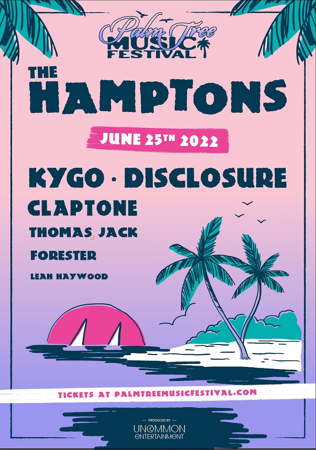 The single-day Palm Tree Music Festival is a one-of-a-kind, intimate festival experience curated by Kygo and Manager Myles Shear to capture the unmatched feeling of summer in paradise with majestic beach vibes and unmissable sets by a lineup of global icons: Leah Haywood, Thomas Jack, Claptone, Forester, Disclosure, and Kygo.