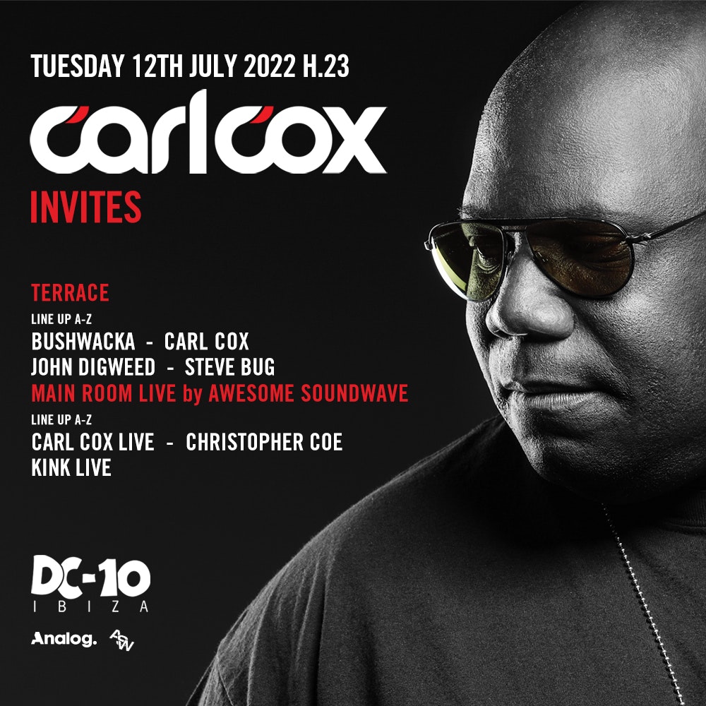 We are very happy to announce Carl Cox's residency #CarlCoxInvites at DC10 every Tuesday night throughout July & August for Ibiza 2022. Presented by Carl Cox This is an 18+ event