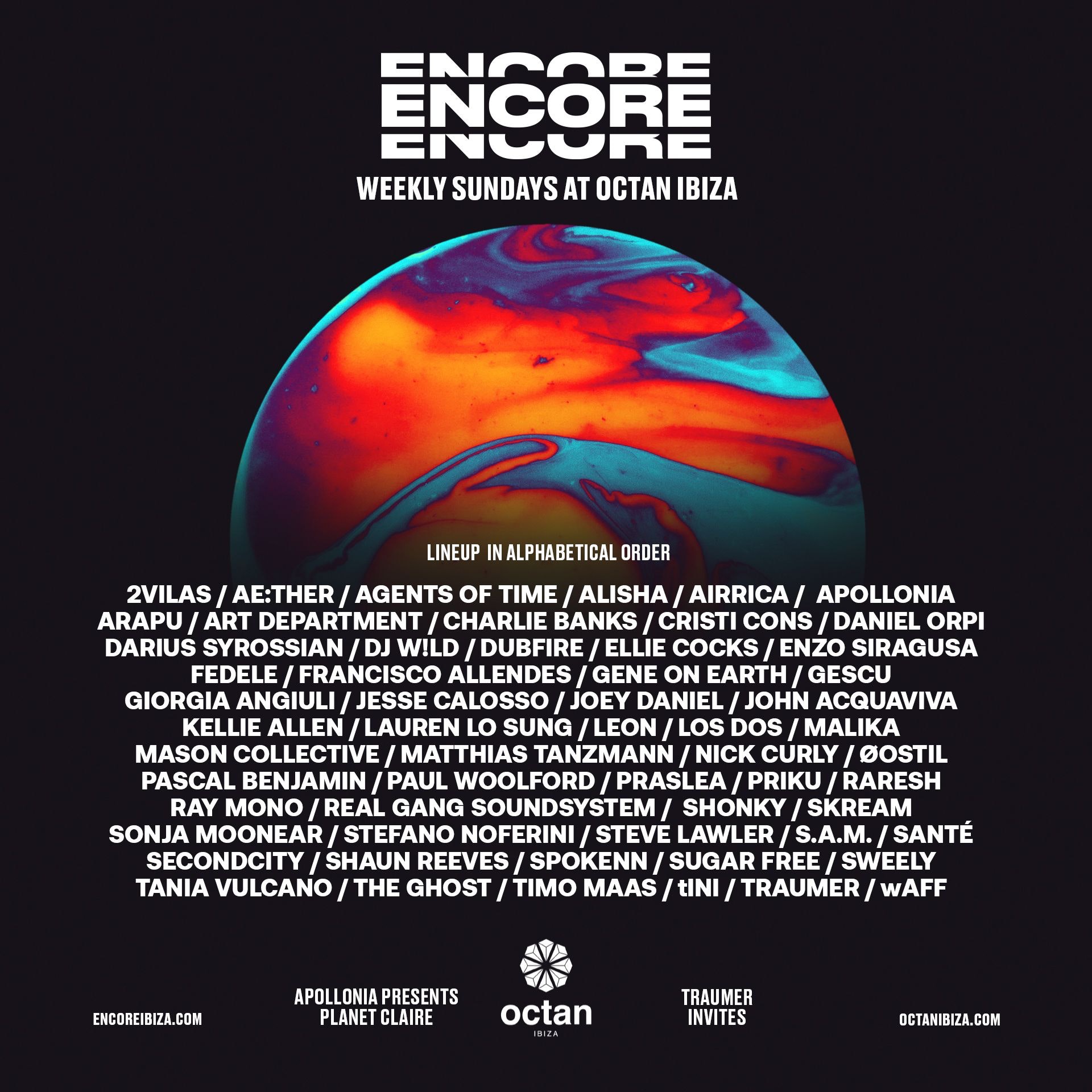 Encore #8 ALISHA MATTHIAS TANZMANN PAUL WOOLFORD STEFANO NOFERINI **LAB** 2VILAS ARAPU PRASLEA Presented by Octan Ibiza. This is an 18+ event.
