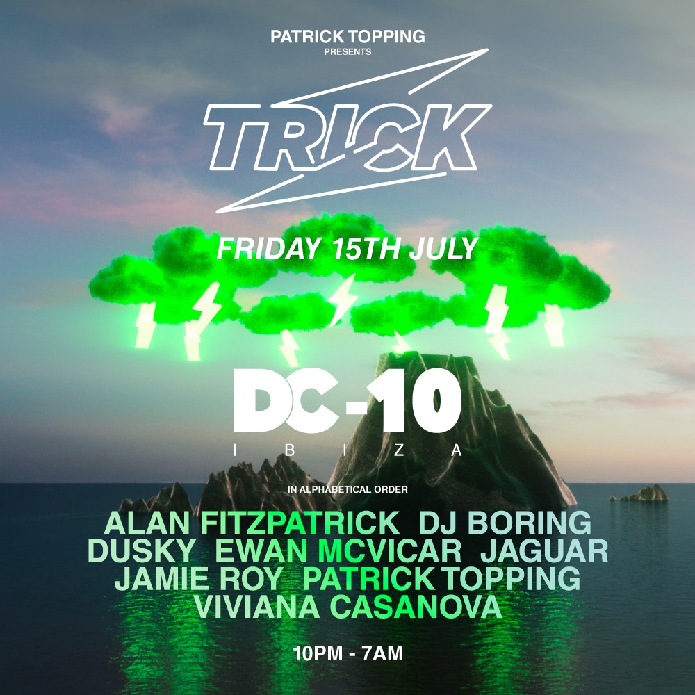 We are excited to announce Patrick Topping's brand Trick will be joining us for 9 shows at DC-10 this summer. Presented by Trick. This is an 18+ event.