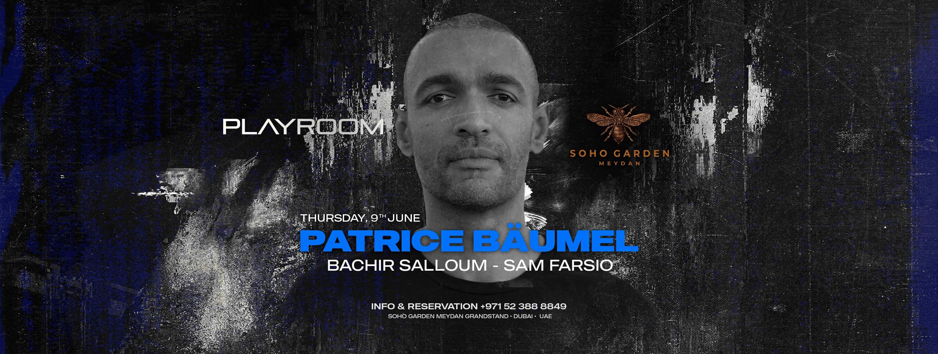 Patrice Bäumel is coming to Playroom 🔥 Join us on Thursday 9th June Support by Bachir Salloum & Sam Farsio #DestinationSoho Info & Reservations via +971 52 388 8849