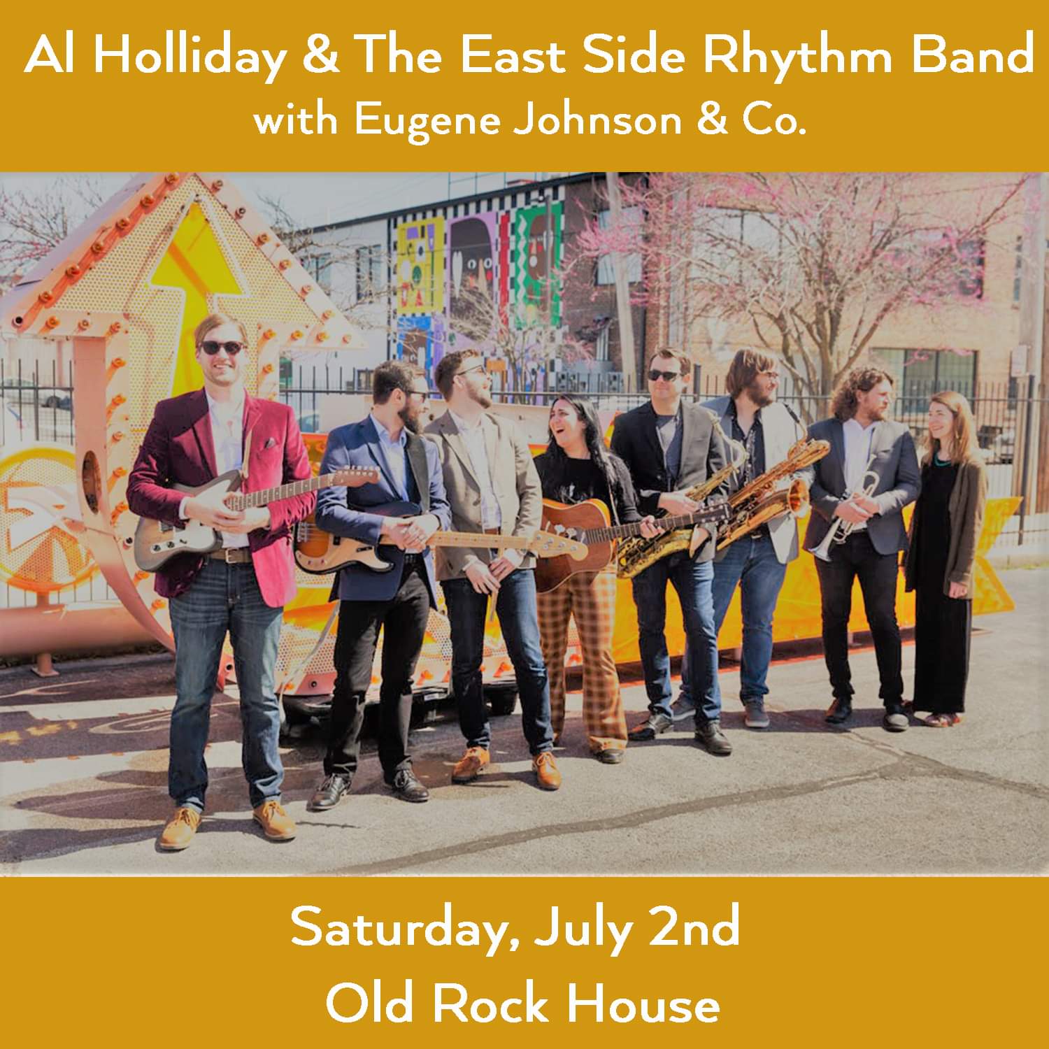 Al Holliday & The East Side Rhythm Band with Eugene Johnson & Co. Saturday, July 2nd Doors 7pm Show 8pm $15 Advance $20 Day of Show All Ages $2 Minor Surcharge