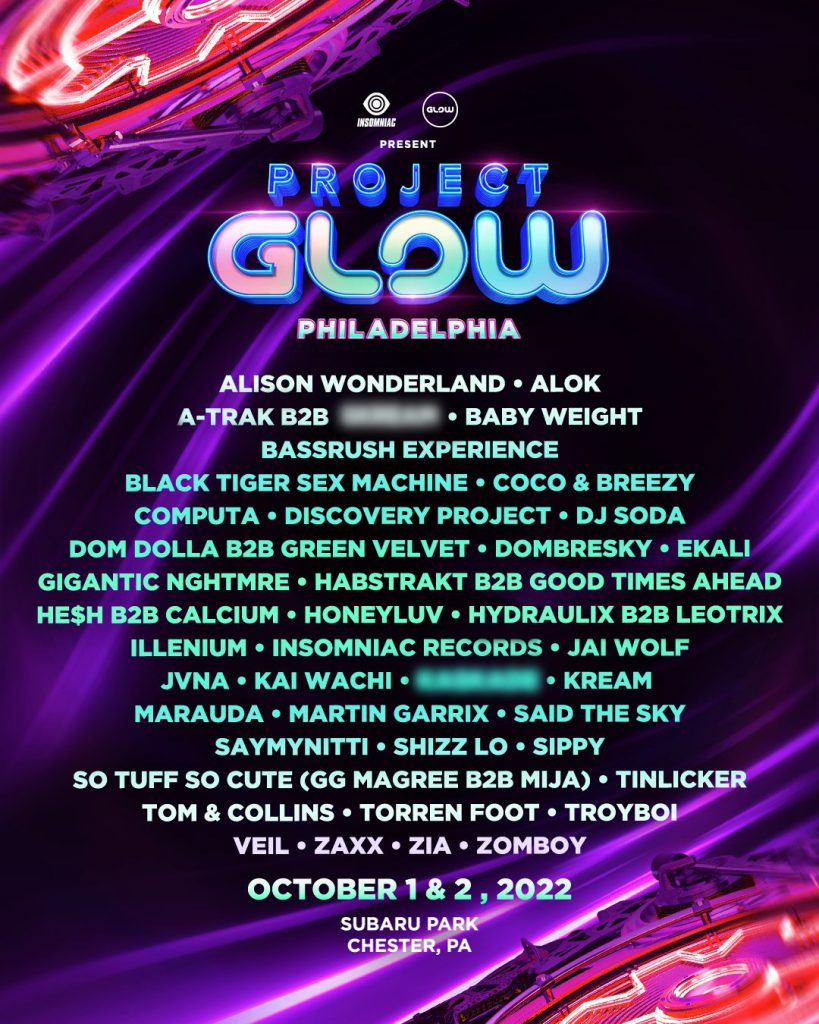 Project GLOW Philadelphia 2022 – Lineup By Artist: