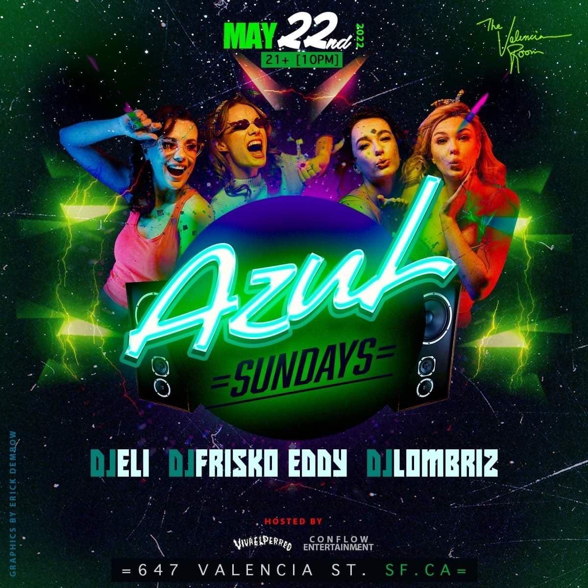 Azul is the #1 Latino Sunday’s in SF! Latin vibes all night! Doors at 10pm DJ's Eli Erick Dembow Tony Play Roni Romero 21+