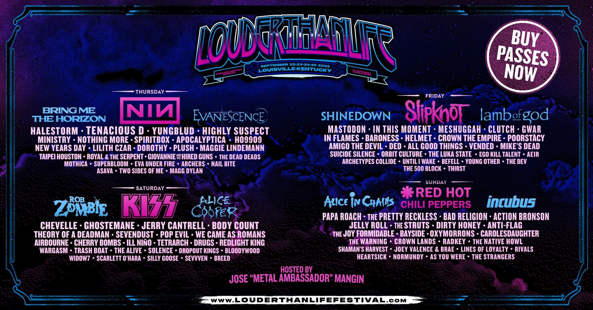 Louder Than Life's six editions to date have featured performances from the likes of Metallica, Korn, Slipknot, Ozzy Osborne, Guns N' Roses, and many more legendary acts.