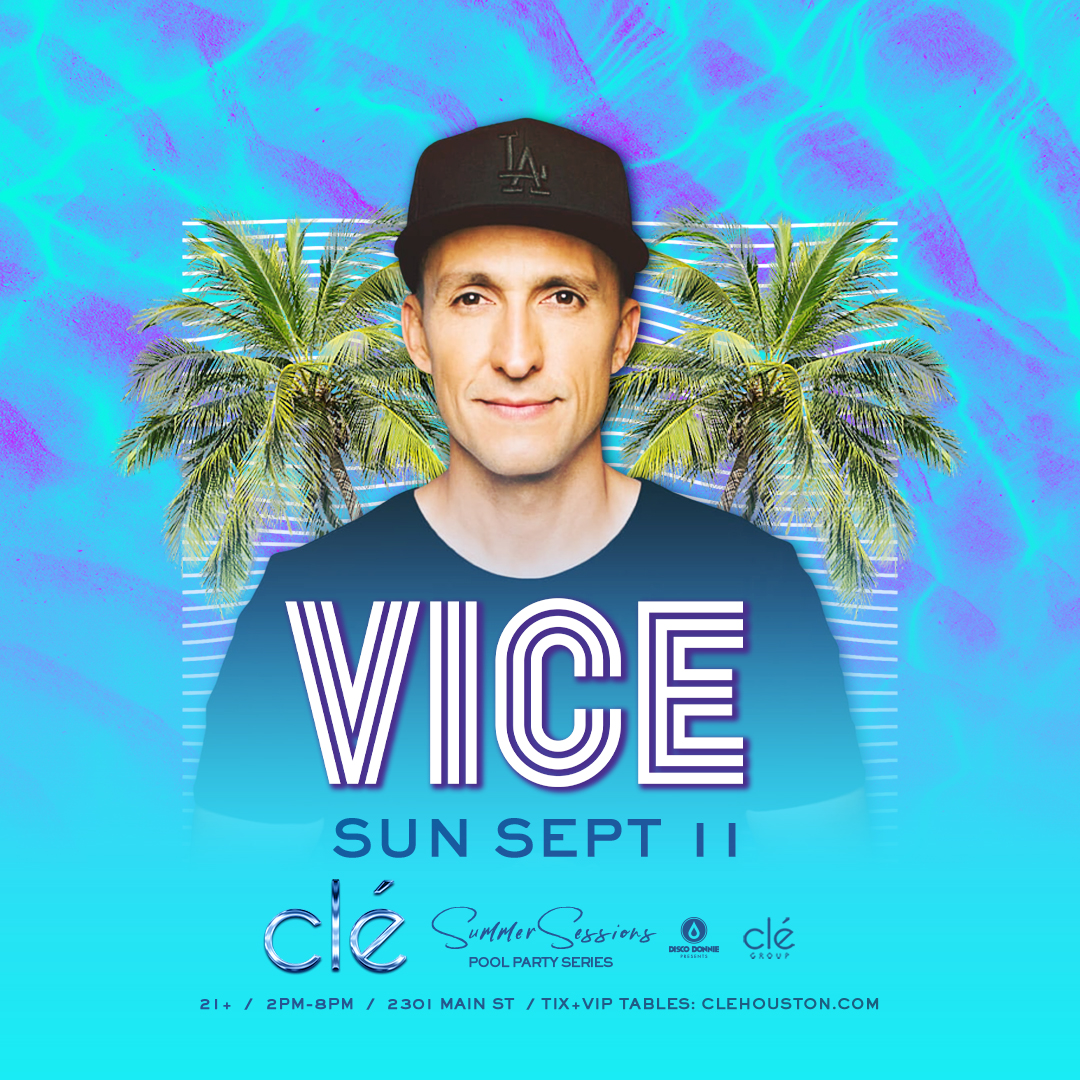 Clé Group and Disco Donnie Presents bring you: VICE Sunday September 11th, 2022 2pm-8pm 2301 Main Street Midtown Houston 21+ Only Dress Code: Fashionable Pool Attire Table Reservations: https://cletix.cc/VIP