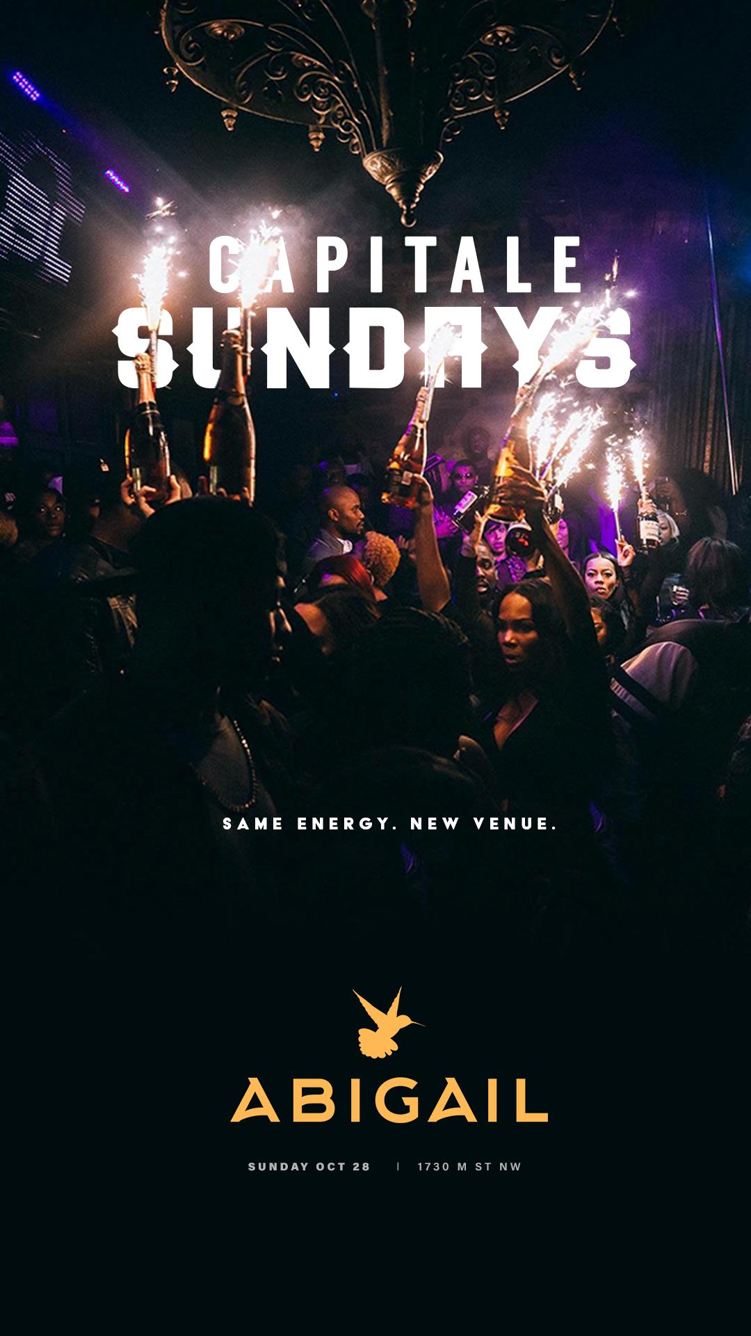 CAPITALE SUNDAYS at ABIGAILSame Energy. New venue.