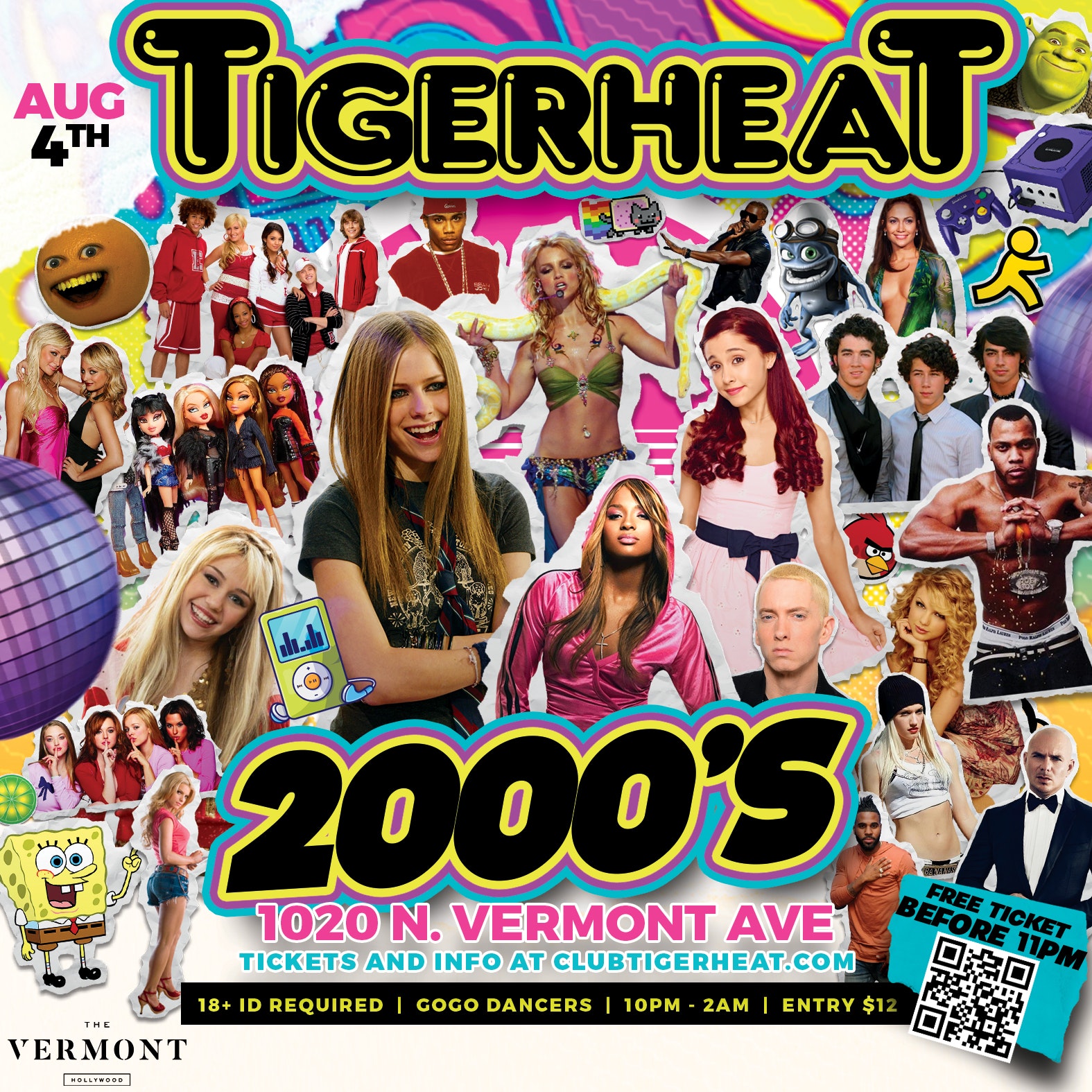 Join us Thursday, August 4th, at TigerHeat at the Vermont Hollywood for 2000s party. Dabce to throwback hits from Nicki Minaj, Rihanna, Lady Gaga, Black Eyed Peas, Katy Perry, Pitbull, Britney Spears, P!nk, Beyoncé and more..