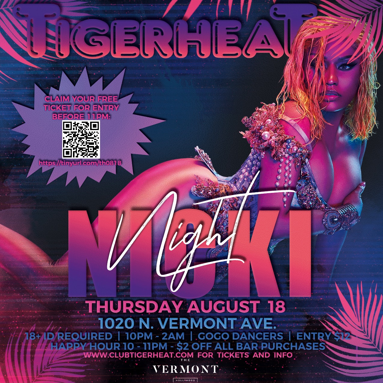 Join us Thursday, August 18th, at TigerHeat at the Vermont Hollywood for our Nicki Minaj tribute night. $2 off all drinks before 11pm.