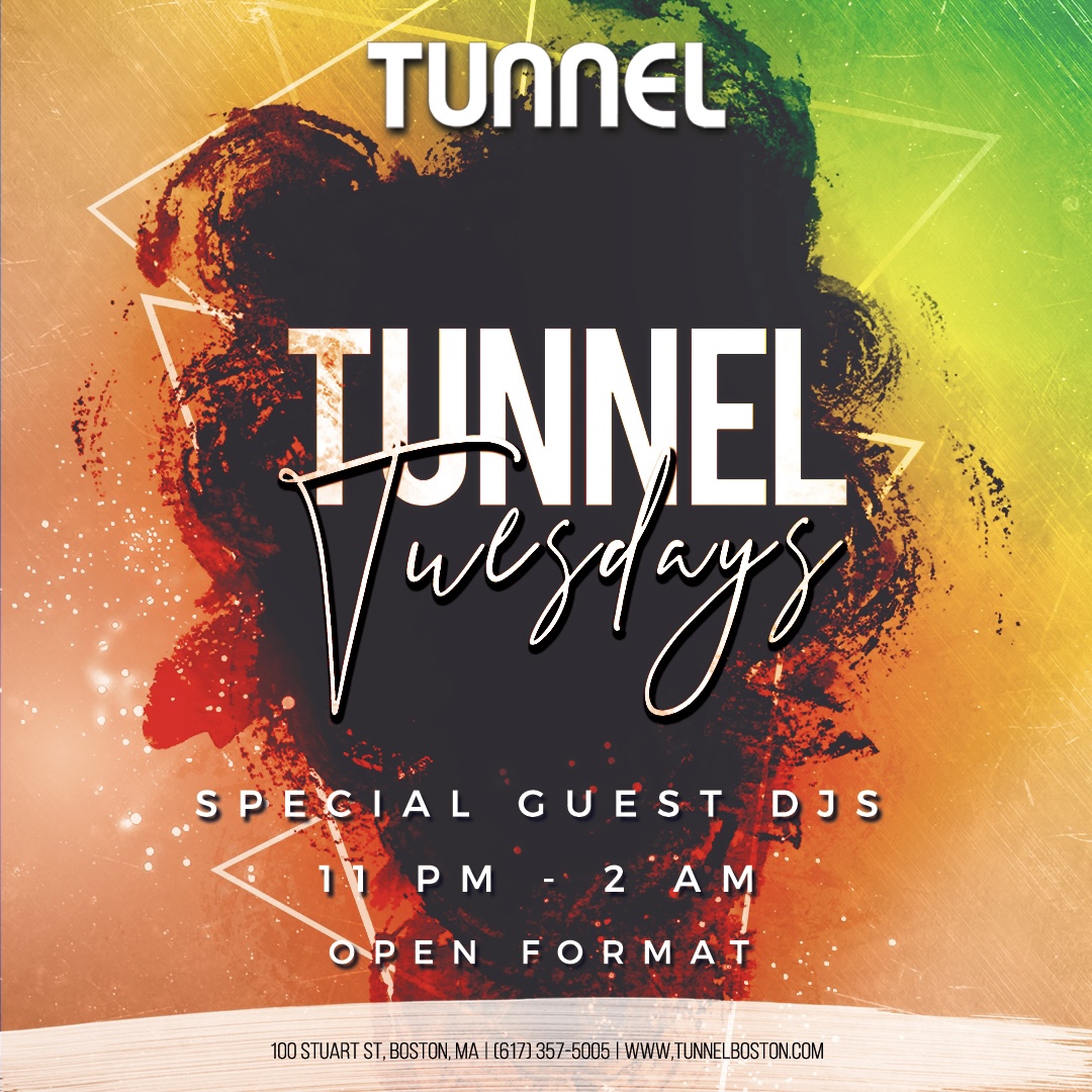 Join us every Tuesday night at Tunnel Boston for rotating DJ's! NO COVER! Doors at 11pm!