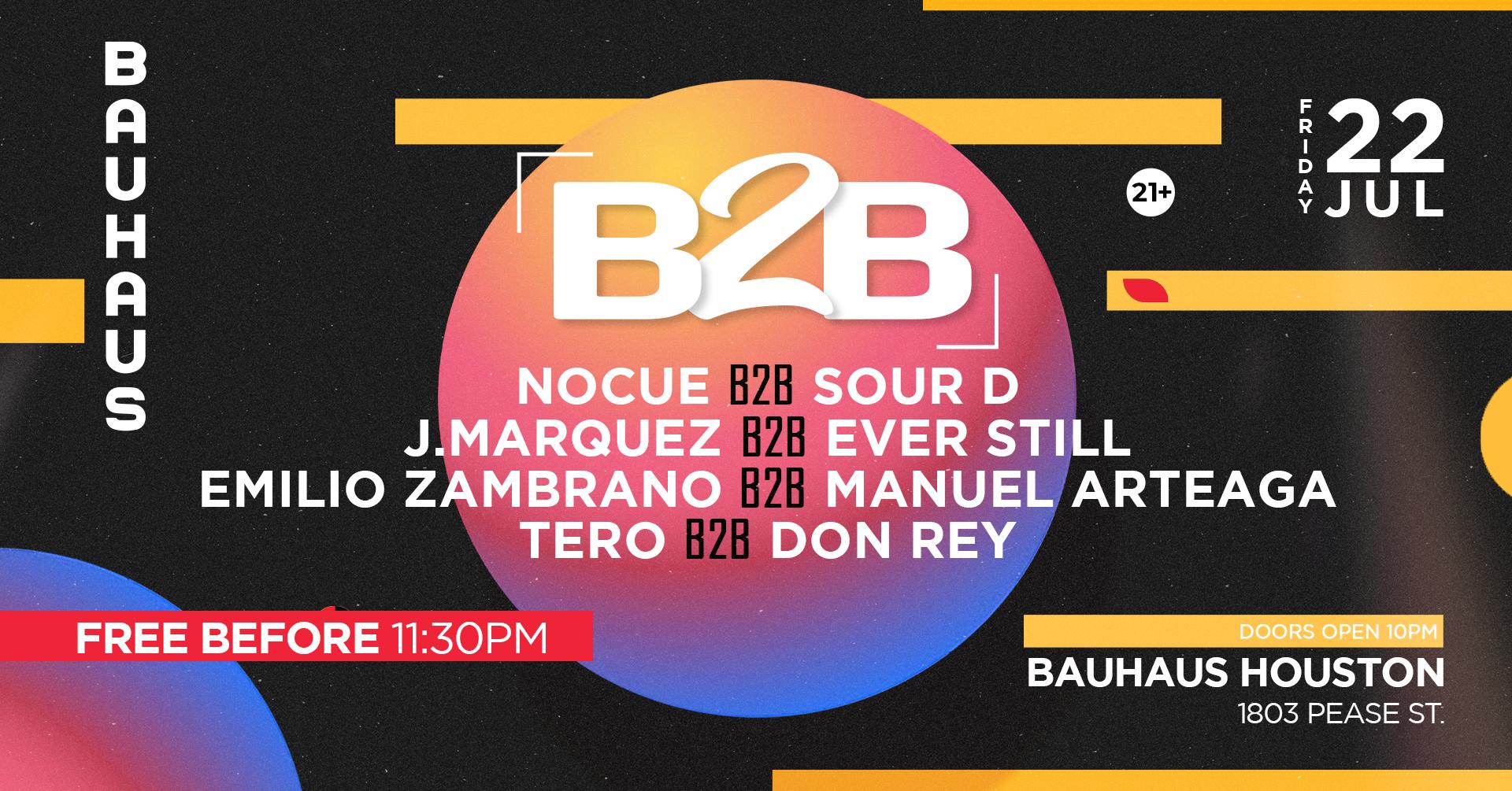 Your favorite locals square off with a night of B2B sets. When energies combine, beautiful things happen. NOCUE b2b SOUR D J.MARQUEZ b2b EVER STILL EMILIO ZAMBRANO b2b MANUEL ARTEAGA TERO b2b DON REY