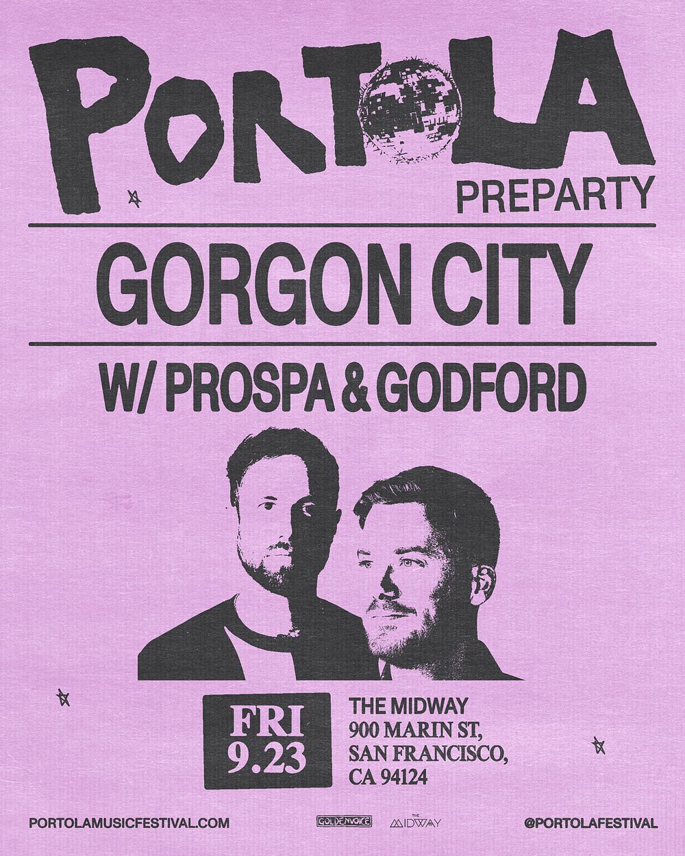 Friday, Sep 23rd, 2022 Goldenvoice & The Midway presents Portola PreParty @ The Midway Featuring: Gorgon City w/ Prospa & Goldford 21+ event Start Time: 9:00 PM @ The Midway SF 900 Marin Street, San Francisco, Ca 94124