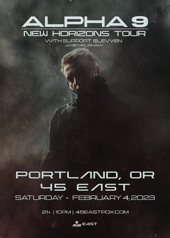 Red Cube Presents ALPHA 9 ELEVVEN ALSO WITH: JAMIE MEUSHAW Tickets on sale Thursday, 11.10 at 10 AM! Doors Open @ 10 PM 21+ w/ Valid I.D. VIP Tables Available. Online reservation available here: http://www.45eastpdx.com/vip Nightclub Rules & Policy: http://www.45eastpdx.com/rules-policy View Upcoming Events at 45 East: https://www.45eastpdx.com/events 45 East 315 SE 3rd Ave. Portland, OR 97214 https://www.45eastpdx.com