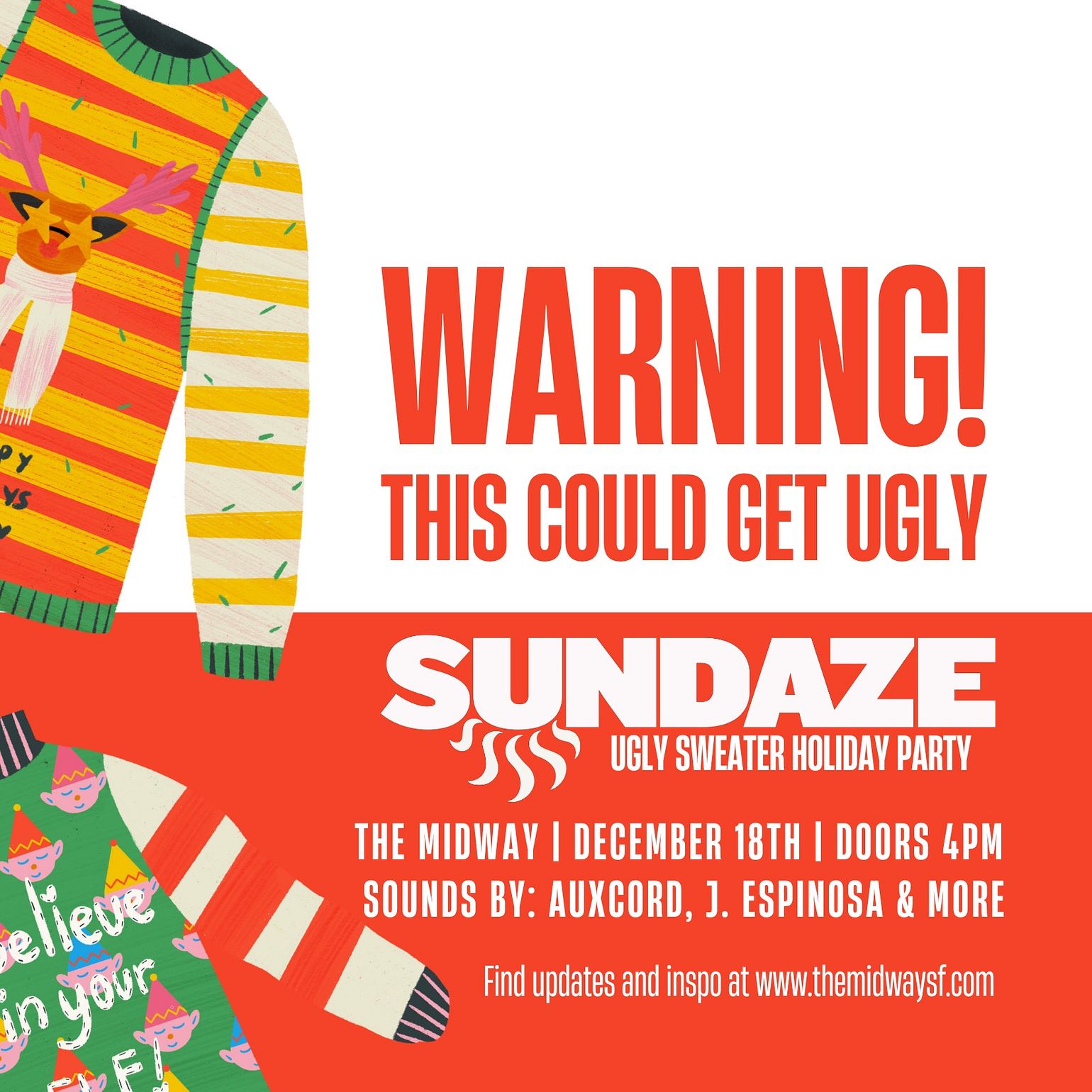 SUNDAZE is back on Sunday, December 18th from 4p - 9p inside San Francisco's hottest venue, The Midway! Come dressed to impress in your ugliest sweater.