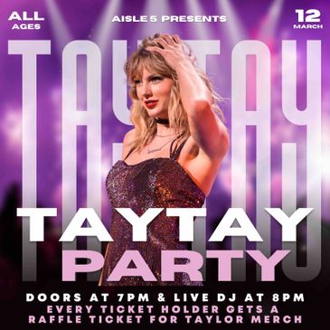 TAYTAY PARTY: Taylor Swift Inspired Dance Party featuring Raffles of Taylor Merchandise & Select Signed Merchandise at the end of the night!