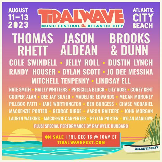 The second annual TidalWave Music Festival in Atlantic City has announced its 2023 lineup, including co-headliners Thomas Rhett, Jason Aldean and Brooks & Dunn.