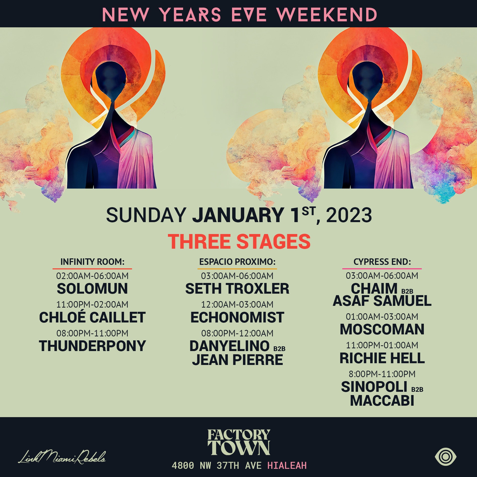 The biggest New Year's Day celebration on Earth is in Miami! Solomun rings in the New Year at Factory Town. From Miami, with Love. 18+ Presented by Link Miami Rebels This is an 18+ event