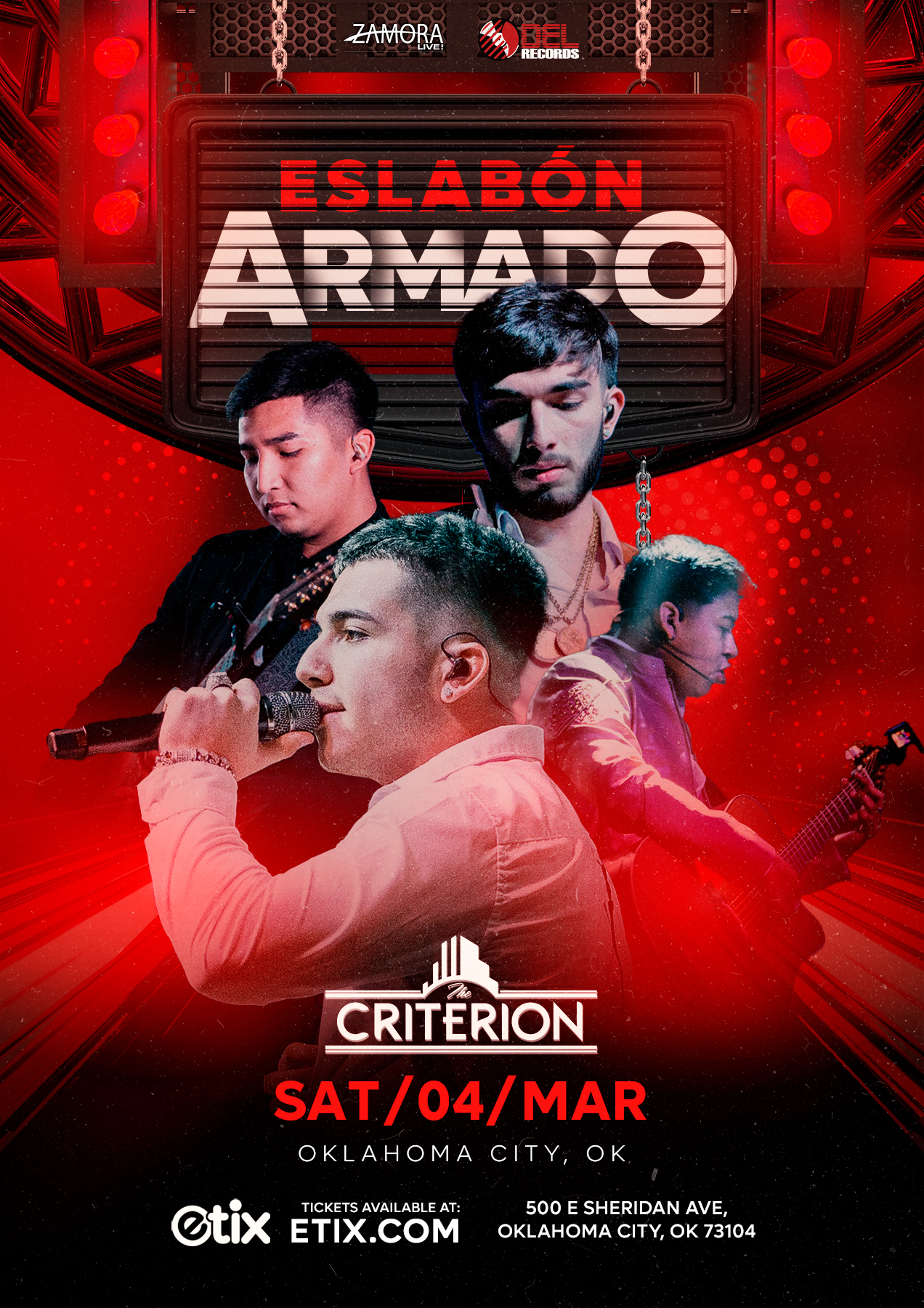 Zamora Presents Eslabon Armado Saturday, March 4th, 2023 Doors 7PM // 8PM Reserved Floor Seating Reserved Balcony Seating Sábado, 4 de Marzo de 2023 Puertas abren: 7PM // Comienza: 8PM Asientos reservados