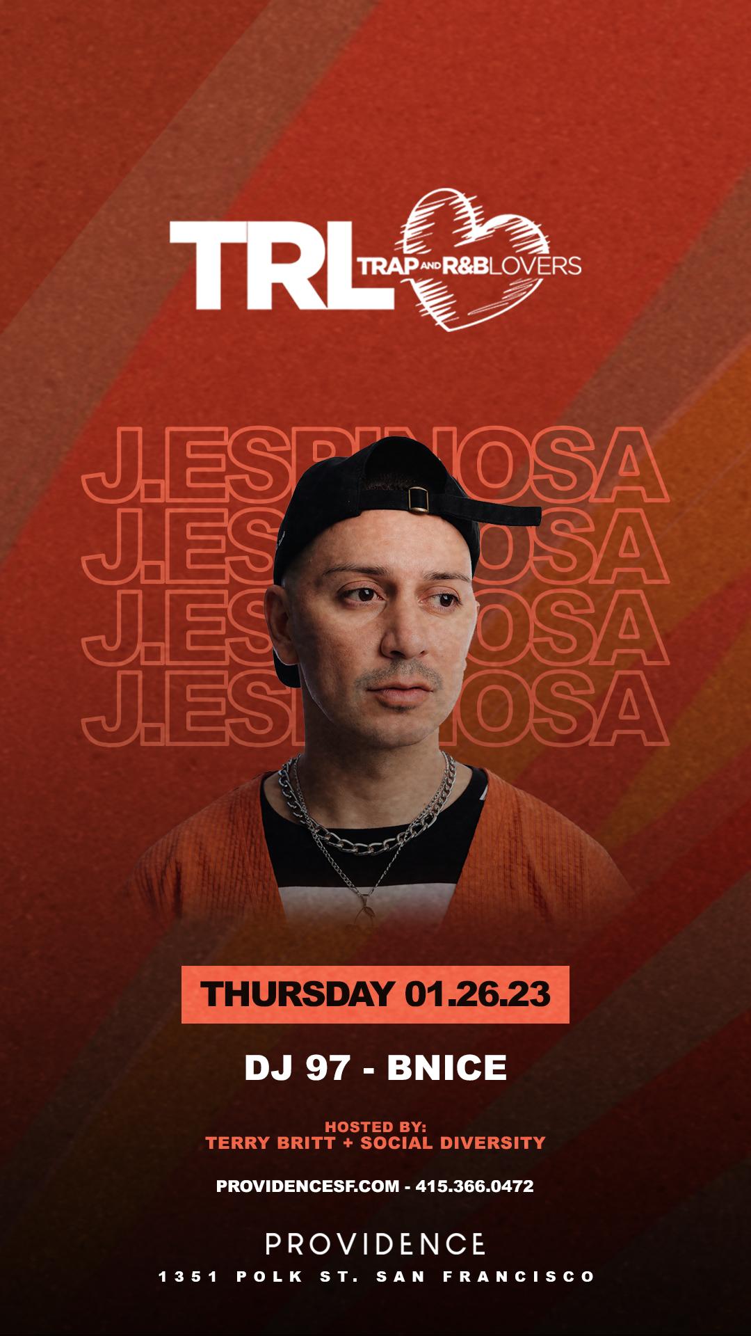 J. Espinosa at TRL (Trap + R&B Lovers) Where: Providence - 1351 Polk St. San Francisco