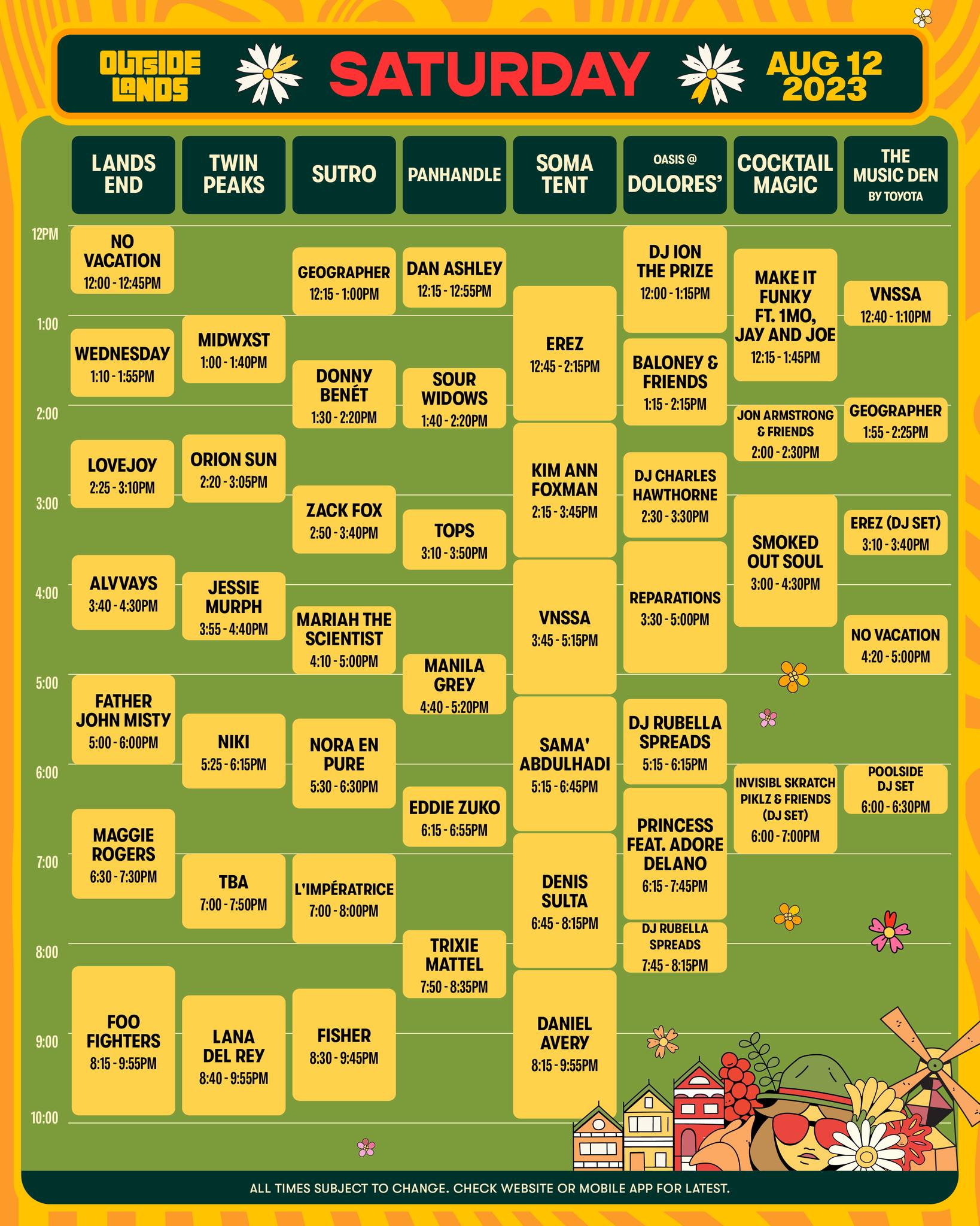 Friday will see headliner Kendrick Lamar along with international superstar Zedd, Janelle Monáe, J.I.D, WILLOW, aespa, DJ Diesel, and more kick off the festival with high-energy sets. Foo Fighters, Lana Del Rey, FISHER, L’Impératrice, Nora En Pure, VNSSA, and others will set the stage for Saturday. Sunday, ODESZA will make history as the first electronic act ever to headline the main Lands End stage. Also, catch sets from The 1975, Megan Thee Stallion, Noah Kahan, Cigarettes After Sex, and so much more.
