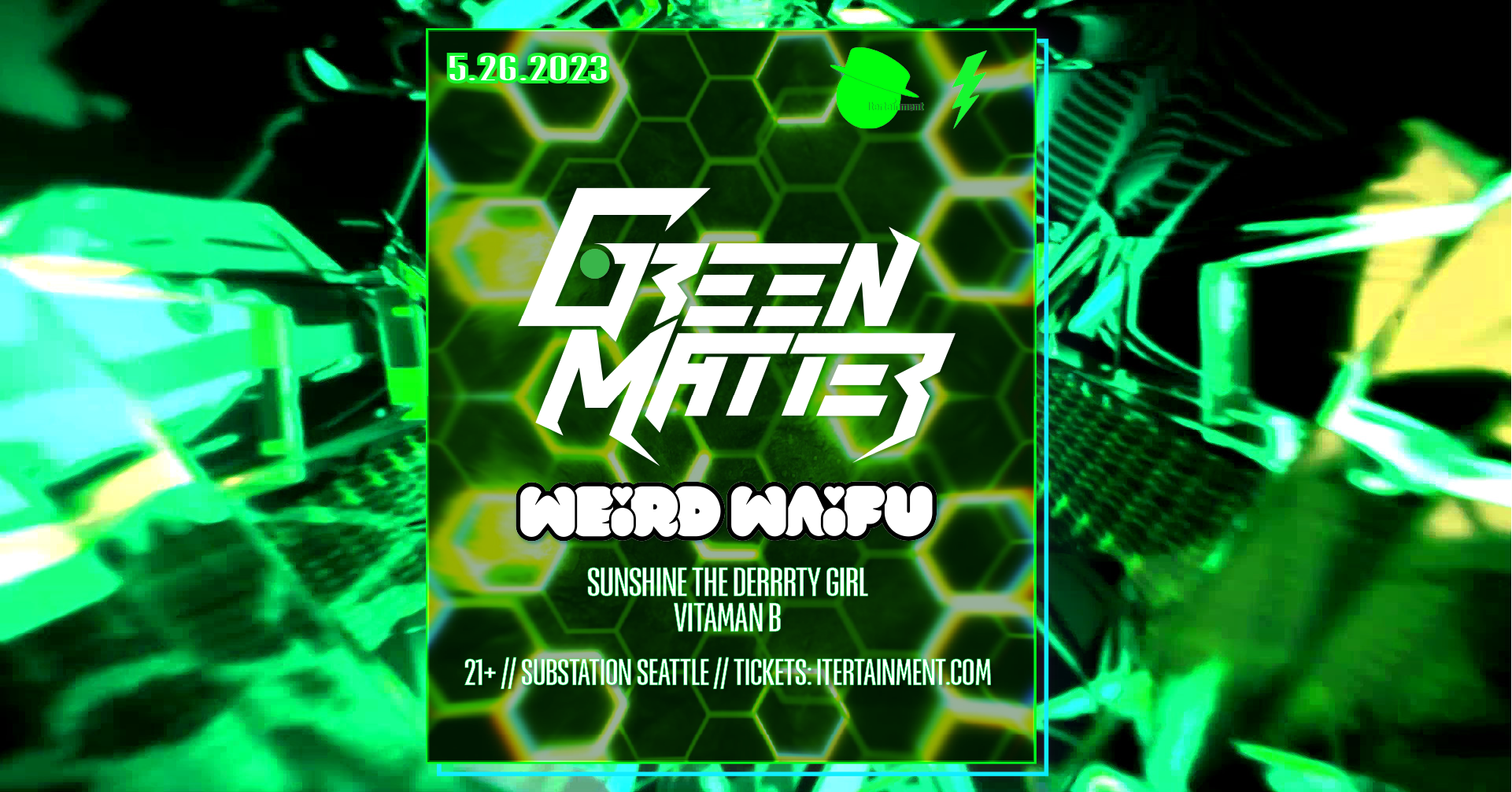 Green Matter SEATTLE DEBUT at Substation with Weird Waifu itertainment and Substation present: GREEN MATTER (Seattle Debut) with: Weird Waifu Support from: Sunshine the Derrrty Girl Vitaman B 21+ only. #dancemusic #edm #bass