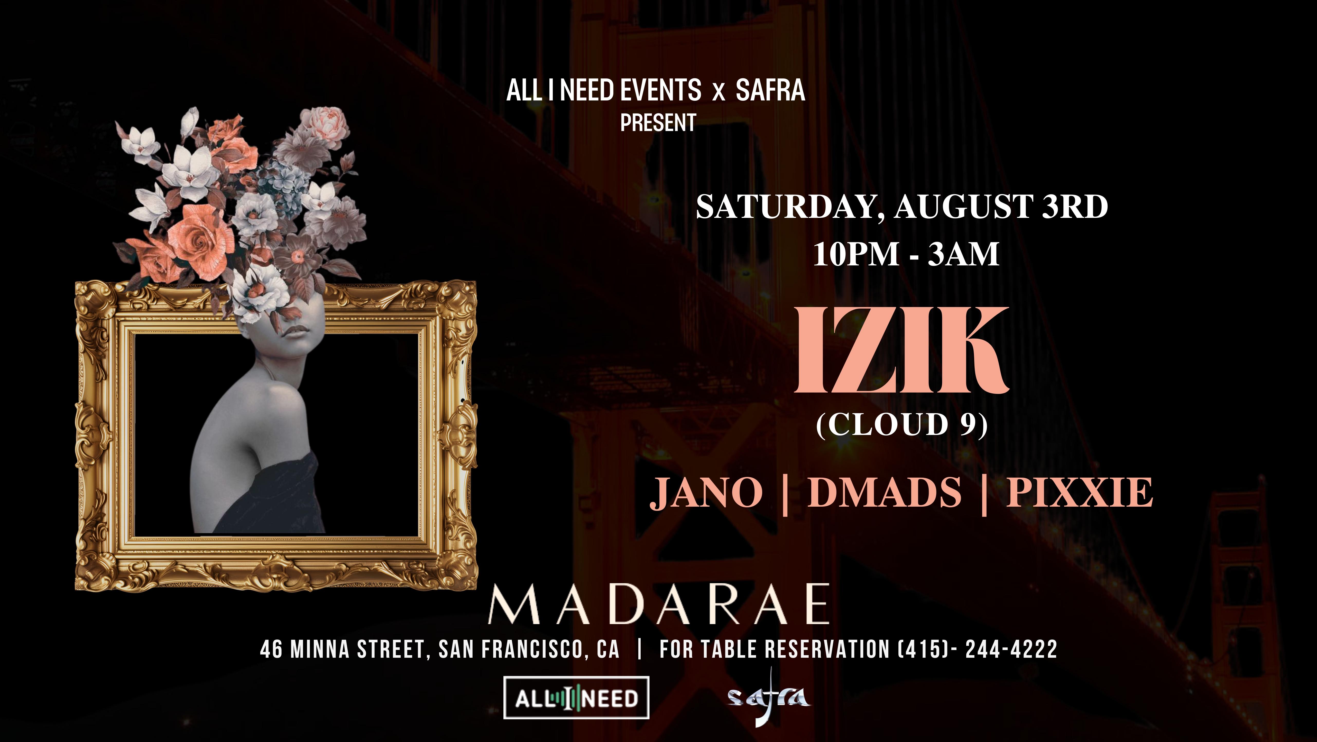 All I Need Events & Safra with IZIK (Cloud9) at MadaRae San Francisco