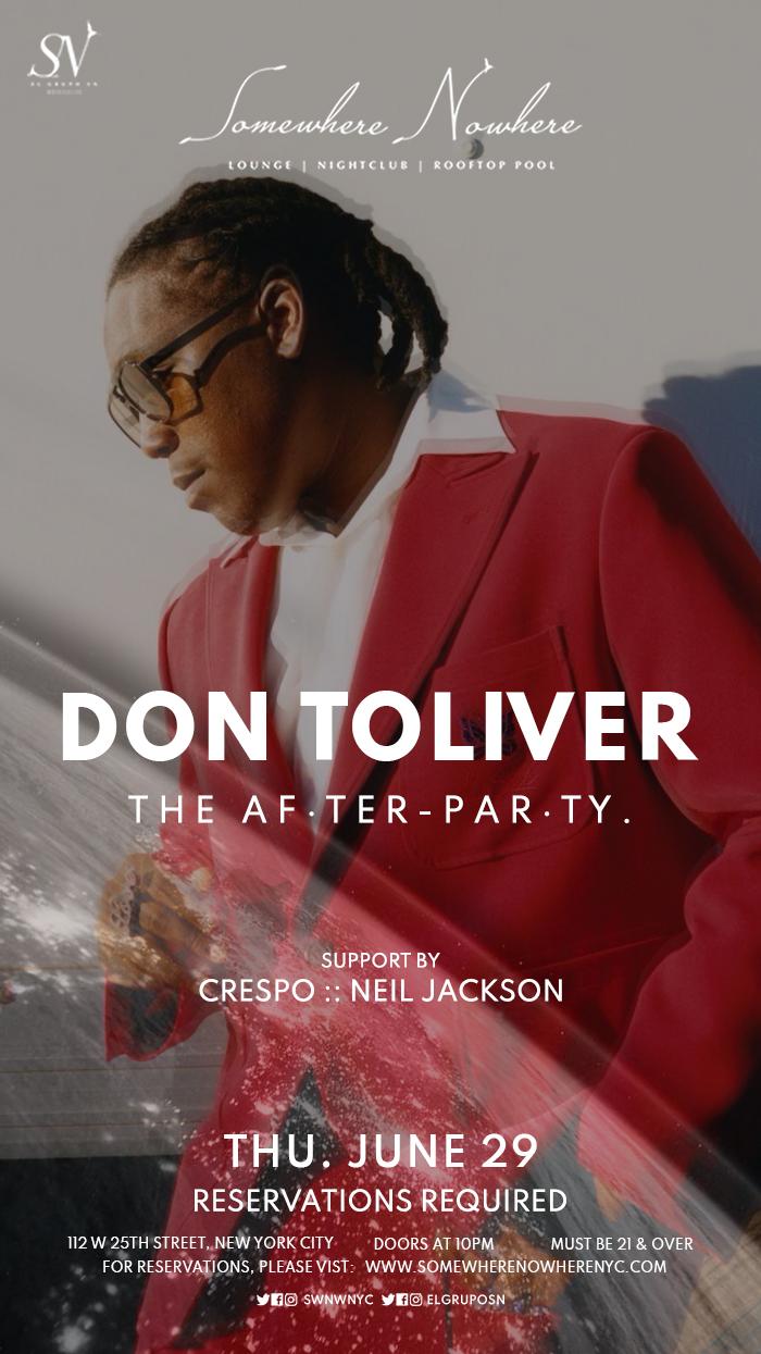 On Thursday, June 29nd, Somewhere Nowhere NYC presents Don Toliver's The After Party. On Thursday, June 29nd, Somewhere Nowhere NYC presents Don Toliver's The After Party. For table service requests, click HERE.