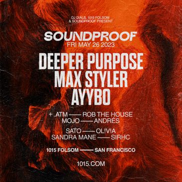 FRIDAY MAY 26TH, 2023 DJ Dials, 1015 Folsom & Soundproof present: Deeper Purpose plus support by Max Styler • Ayybo • .ATM • Rob The House • Mojo • Andrés LIN LOUNGE: SATO • OL!V!A • Sandra Mane • SirHC 10pm • 21+ Only