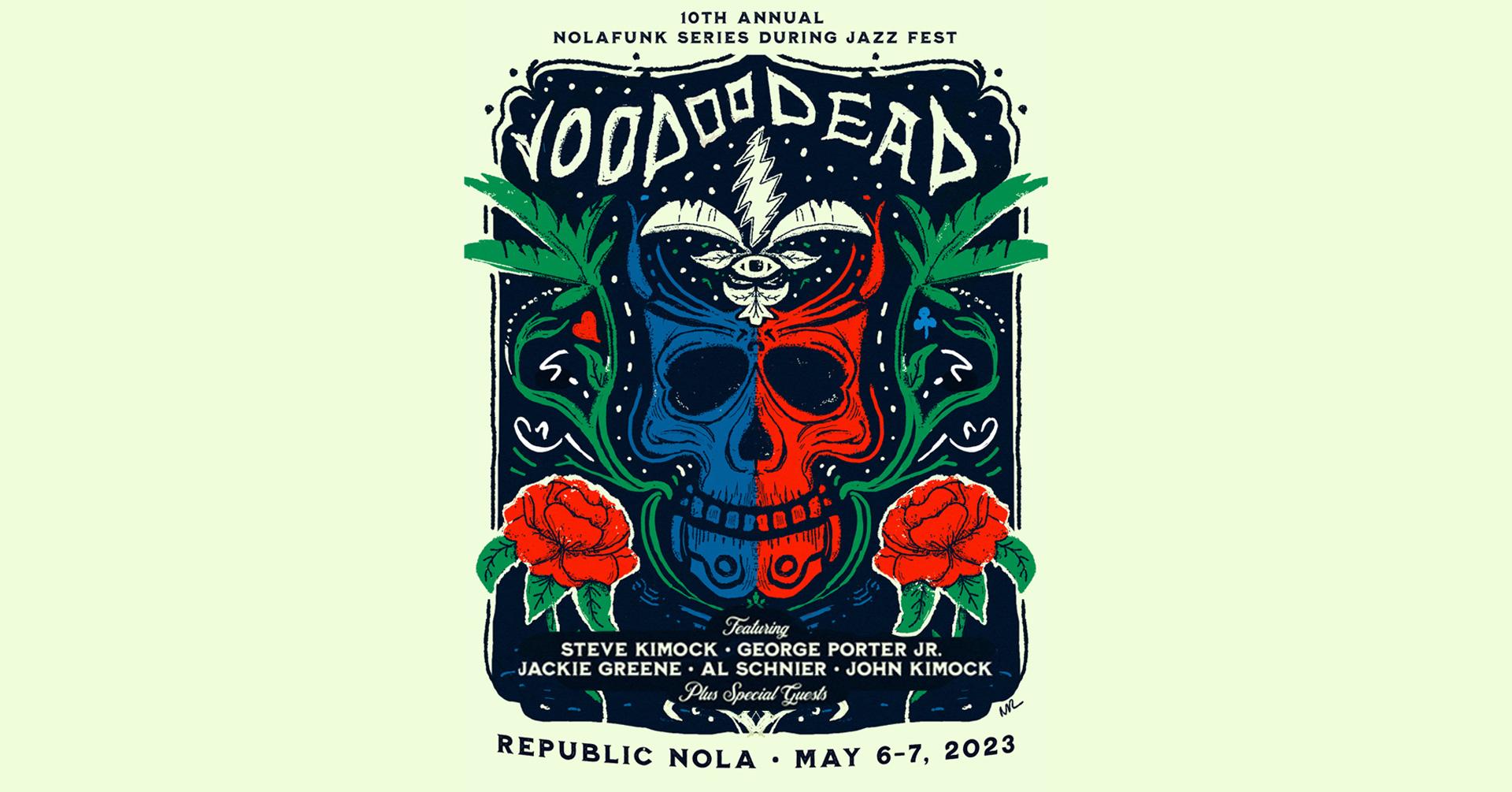 10th Annual Nolafunk Series During Jazz Fest presents Voodoo Dead ft Steve Kimock, George Porter Jr., Jackie Greene + MORE Saturday, May 6! Voodoo Dead ft. Steve Kimock, George Porter Jr., Jackie Greene, Al Schnier, John Kimock on Saturday, May 6th!