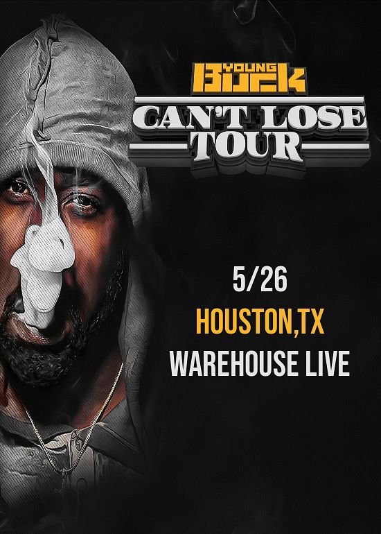 WAREHOUSE LIVE PRESENTS: YOUNG BUCK - Can't Lose Tour THE STUDIO AT WAREHOUSE LIVE MAY 26, 2023 DOORS: 7:00 PM SHOW: 8:00 PM TICKETS: $25 ADV | $30 DOS | $200 TABLES NO RE ENTRY