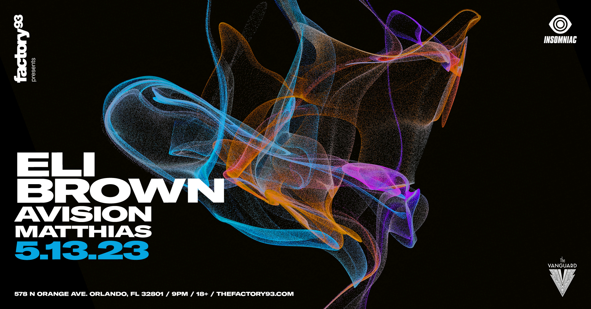 Join us on Saturday, May 13th for an electrifying night on the dance floor with Eli Brown and Avision at The Vanguard in Orlando, Florida.