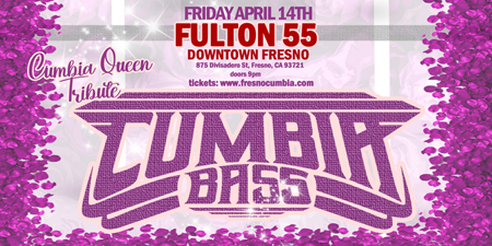 Cumbia Queen tribute dance party promises to be an exciting, fun and unforgettable experience! Special guest DJ Sirena featuring Murdock 198X & percussionist Matty Segura! Cumbia will keep everyone dancing all night! Food truck by Chuys Tacos / In downtown Fresno at Fulton 55 / 875 Divisadero St, Fresno, CA 93721 / starts 9pm-2am early bird tickets $10 until 6 pm day of show door $20 / 21+ Tickets available at www.fresnocumbia.com