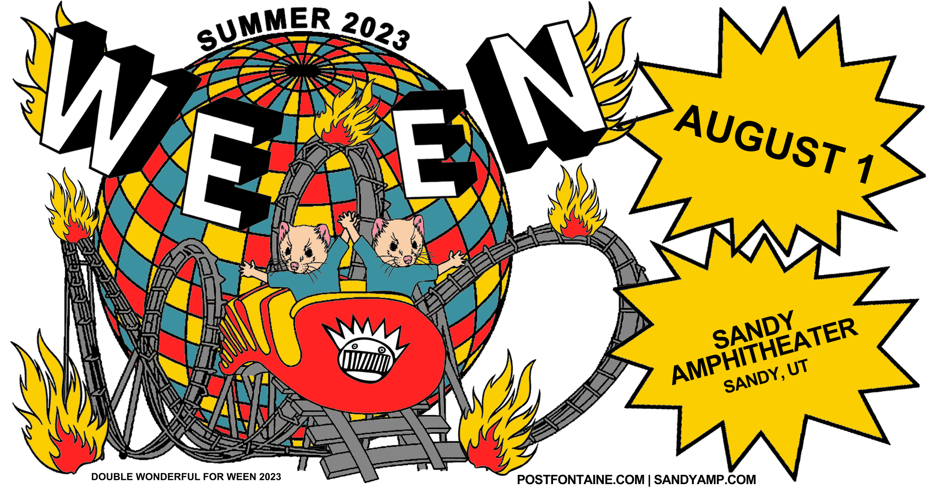 Postfontaine Presents: Ween at Sandy Amphitheater on August 1st! Artist Presale: 3/22 at10am Local Presale: 3/23 at 10am On Sale: 3/24 at 10am