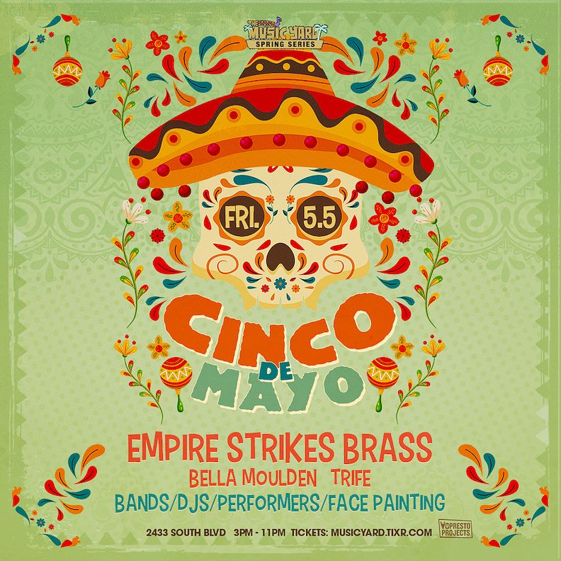 Join us Friday, May 5th as we celebrate Cinco de Mayo at the Music Yard! Come out to listen to music, drink, eat and rally in the festivities. There will be bands/dj's performances and face painting so you don't want to miss out on all the excitement.
