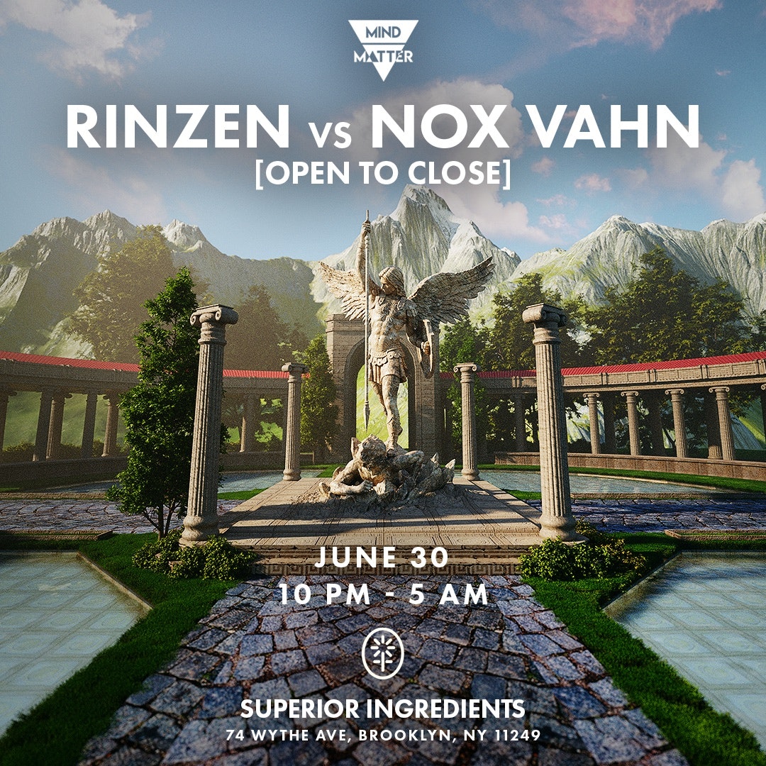 Join the debut of Mind-Matter’s Versus Series. In this first installment, we present Rinzen and Nox Vahn from Open to Close. Each artist will perform individual sets before they face off for an unforgettable B2B performance to cap the night.