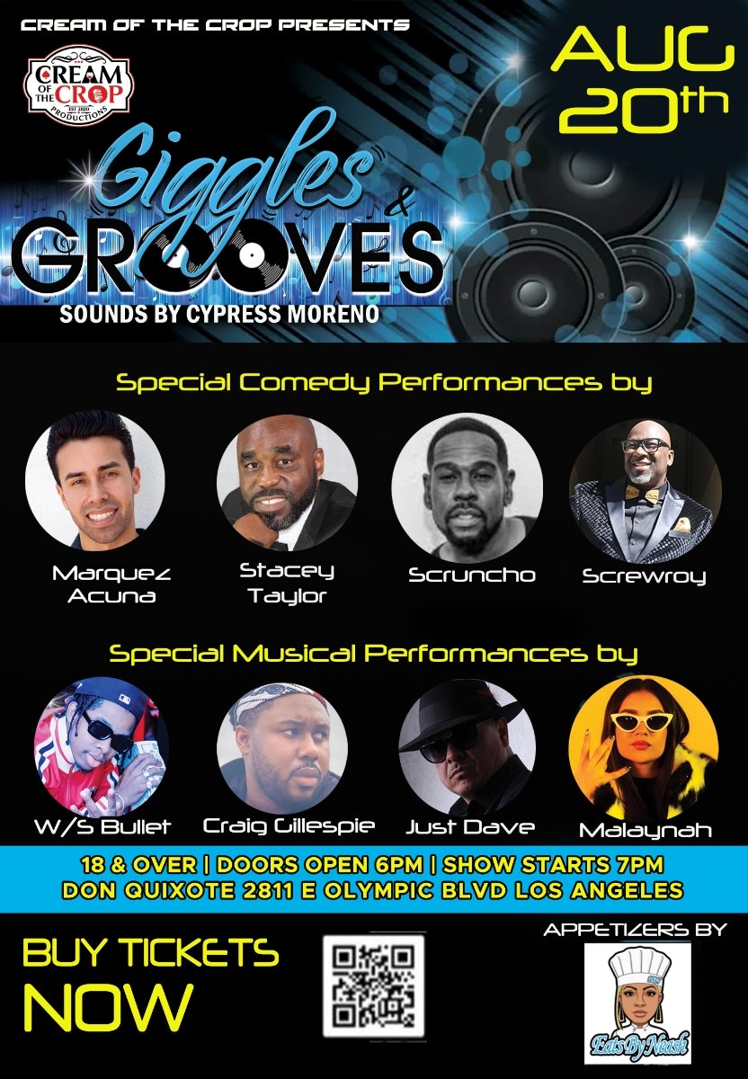 Giggles and Grooves, Live Comedy show followed by Live music performance so you can laugh and Party all on the same night. Presented by Cream of the Crop Productions This is a 18+ event