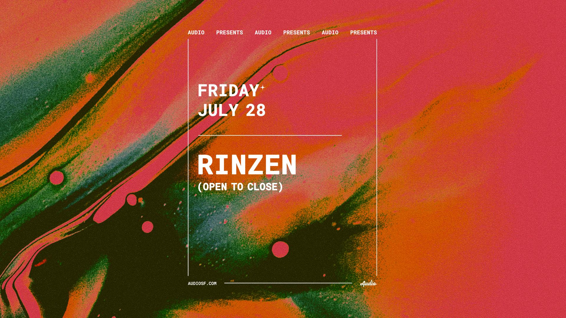 Audio welcomes Rinzen back to the club for an open-to-close set on July 28th.