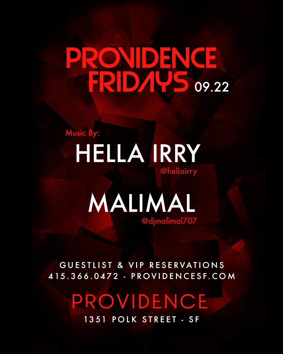 ***This is a 21+ Event*** PROVIDENCE FRIDAYS - Hip HopWhere: Providence - 1351 Polk St. San Francisco Stylish Dress Code Enforced Yes: Nikes, Jordans, Sneakers, Hats No: Timbs, White Tee's, Sports Attire, Hoodies, Sweats, Track Suits, Shorts 🔉Music By: @HELLAIRRY - @DJMALIMAL707