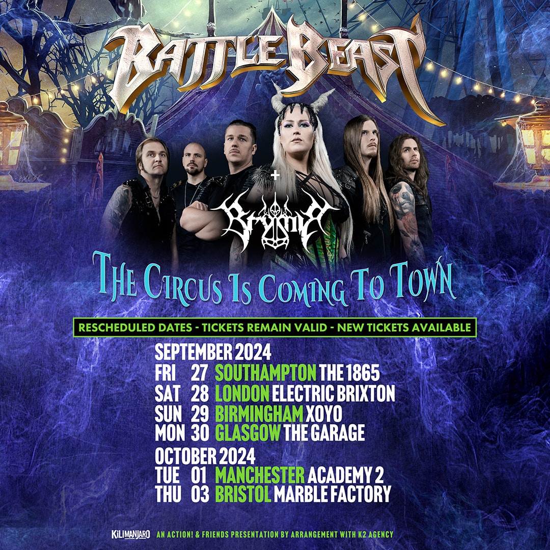 Famous for their energetic shows, incredibly catchy choruses and odd sense of humour, Battle Beast are destined for glory. Topping the Finnish charts for the fourth consecutive time and hitting #9 in Germany with their 2022 album “Circus of Doom”, the Helsinki-based sextet is looking and sounding stronger than ever.