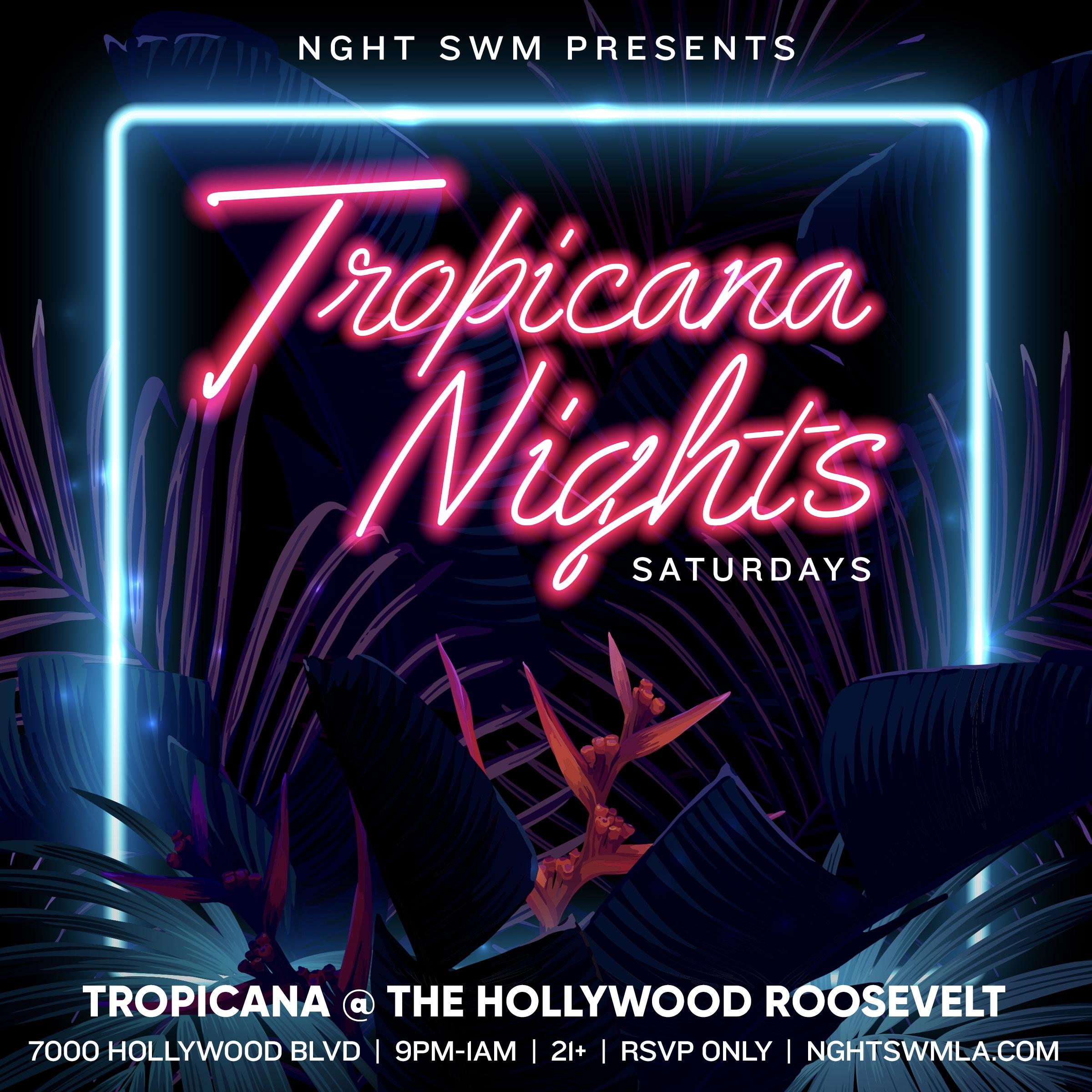 Tropicana Nights every Saturday @ The Hollywood Roosevelt Every Saturday 🦩 TROPICANA NIGHTS 🌴 DJ’S Dancing Full Bar Menu Special Guests Outdoor Poolside Under the stars Tropicana The Hollywood Roosevelt 7000 Hollywood Blvd 9PM-Late | 21+ | Guest List Only Suggested Dress Code: Chic RSVP 👇 www.nghtswmla.com Ask us how to celebrate your birthday or group party at TROPICANA NIGHTS *this is NOT a pool party