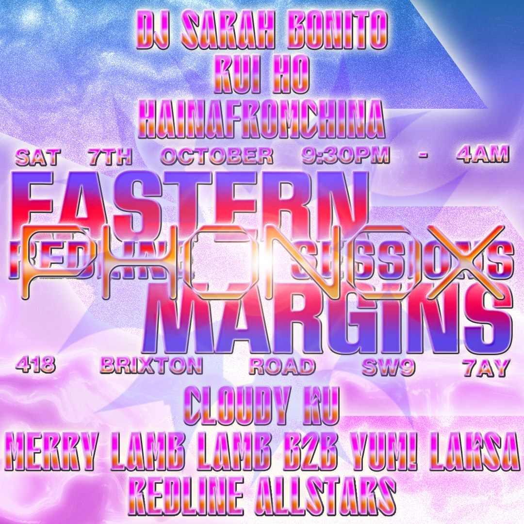Eastern Margins makes their debut at Phonox, joining forces with DJ Sarah Bonito, Rui Ho, Hainafromchina & more on Saturday 7th October.