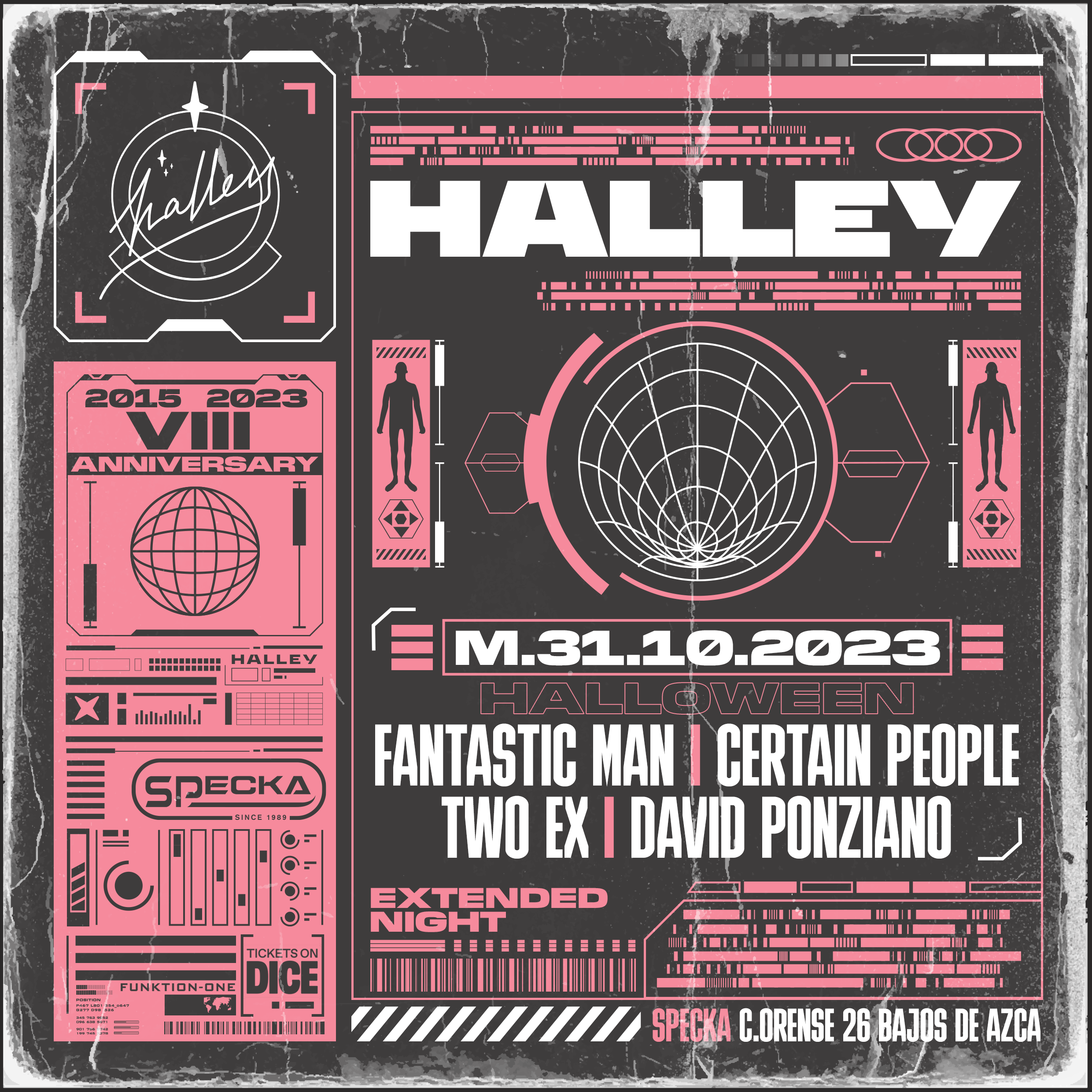 Para completar el trick-or-trade del cometa, las TWO EX darán solo buenos caramelos de buen tecnho, hasta que os queden pegajosas las suelas. Y si habeis sobrevivido el viaje, y aguantaís para soplar las velas del Halley, Certain People y el capitan del Cometa David Ponziano, partiran un gran pedazo de tarta acida para la celebración, hasta que completemos una nueva vuelta de orbita!!!