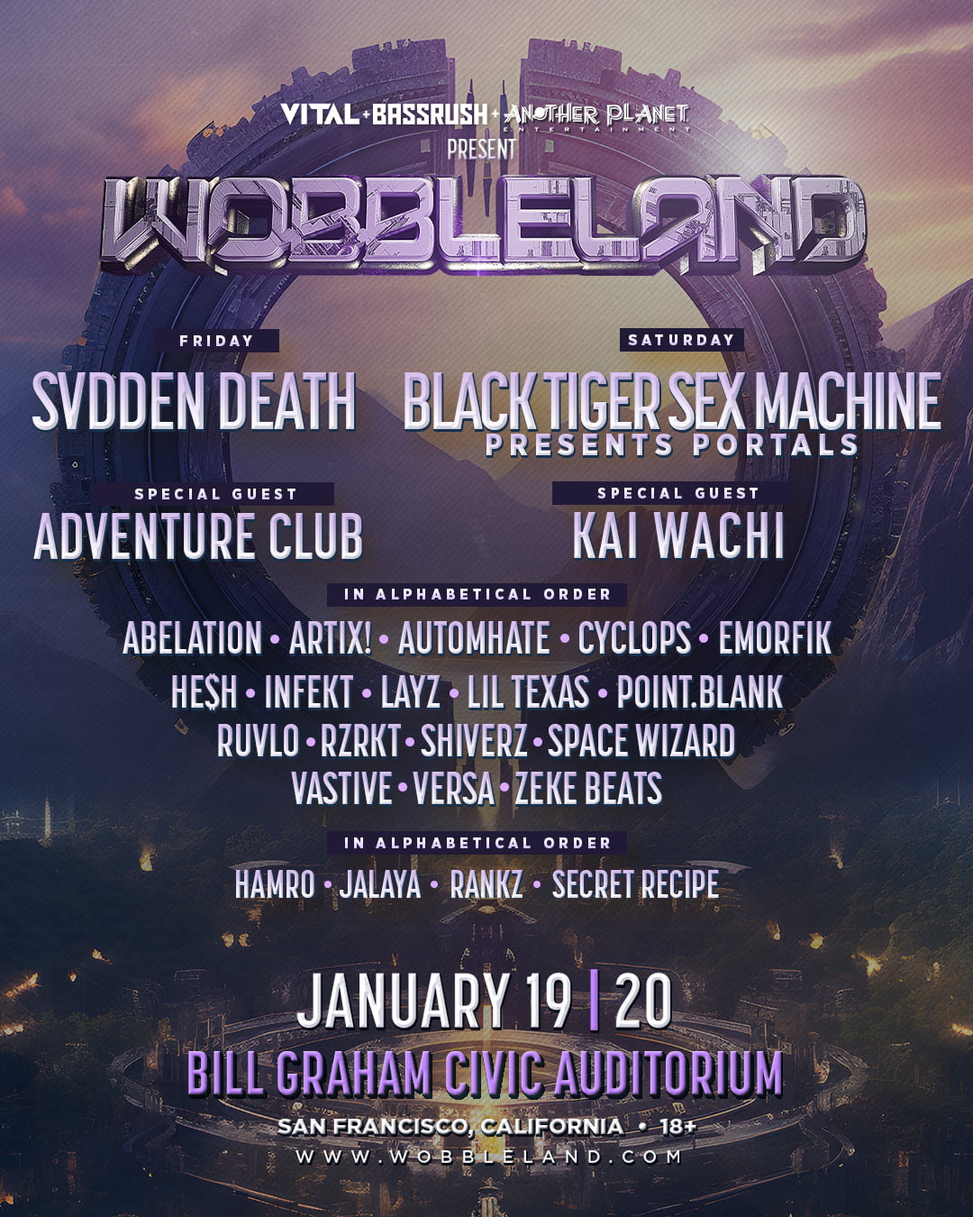 Running for over a decade now, Wobbleland has become a staple festival for ravers in the Bay Area. Known for bringing some of the biggest and baddest artists in bass music, fans can always count on this event to bring their best fix of wubs, and the 2024 edition is shaping up to be no different. Vital, Bassrush, and Another Planet Entertainment have teamed up to unleash another epic weekend for lovers of dubstep, trap, and everything in between when Wobbleland returns to Bill Graham Civic Auditorium on January 19-20.