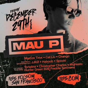 FRIDAY DECEMBER 29TH MAU P + Marcus Tirox • Cat Liu • Chango KLUB ROOM (GH Entertainment): JJKO • Haboob • Spooki Lin Lounge (Runs Deep): Torteline • Christopher Charles MoHeato • Hunter Green B2B Freddie Simmons 10pm • 21+ Only